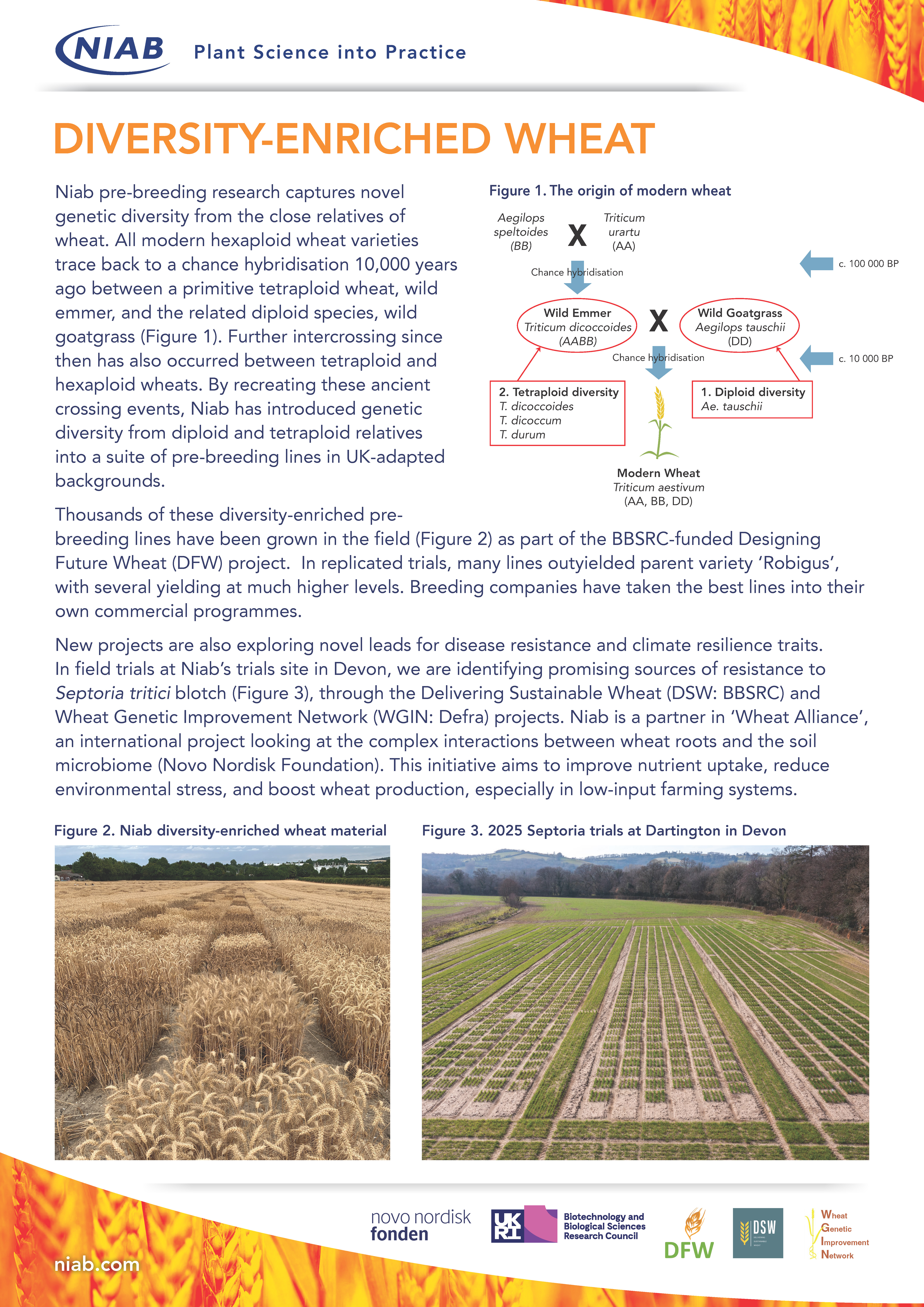 Updated for 2025 this poster, used with demonstration plots at the Cereals Event and Groundswell trade shows, summarises the wide-ranging pre-breeding work carried out by Niab over the past 15+ years.