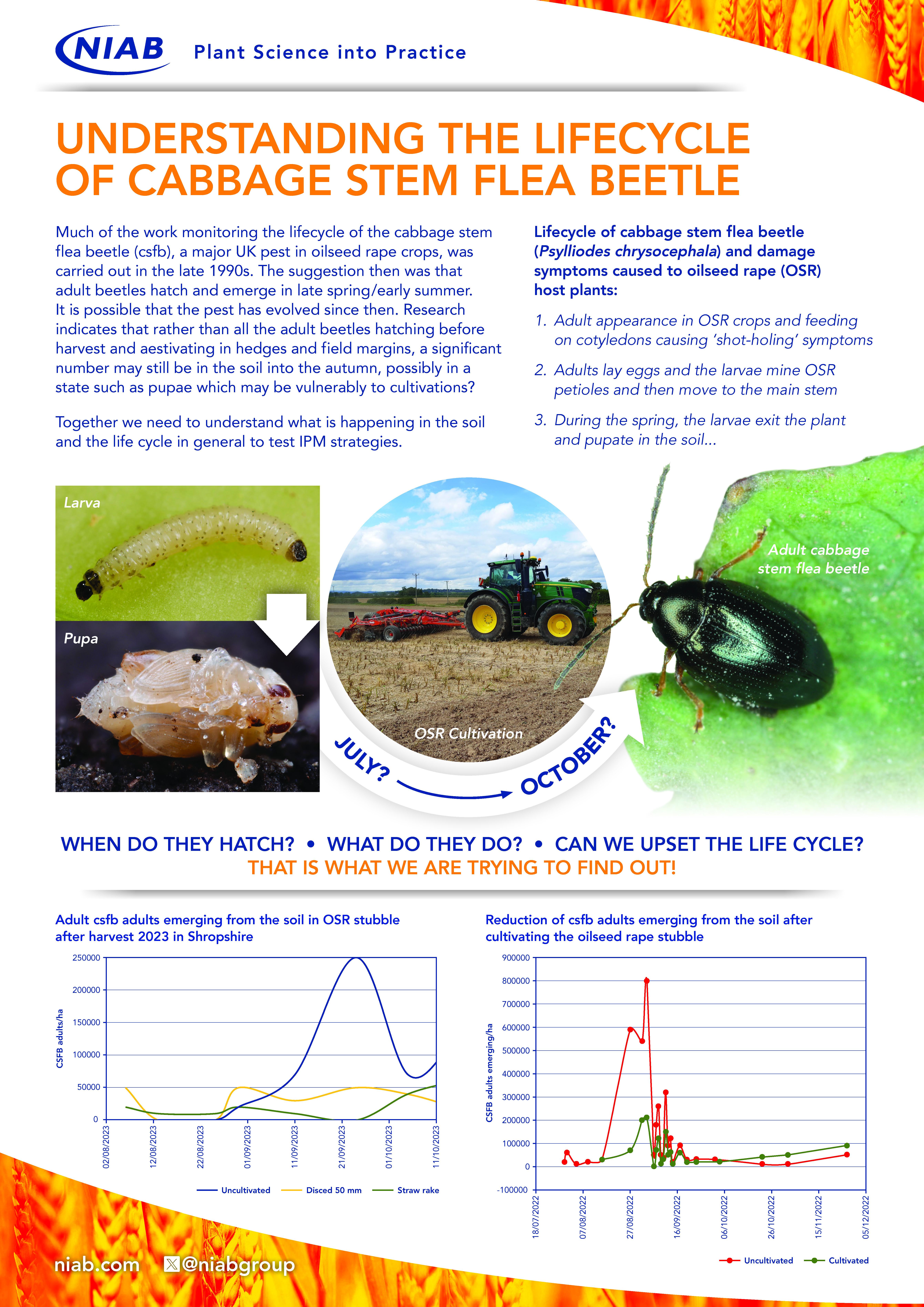 Break crop specialist Colin Peters summarises Niab's work on the lifecycle of cabbage stem flea beetle, originally displayed at the 2025 Niab open days and the Cereals Event.