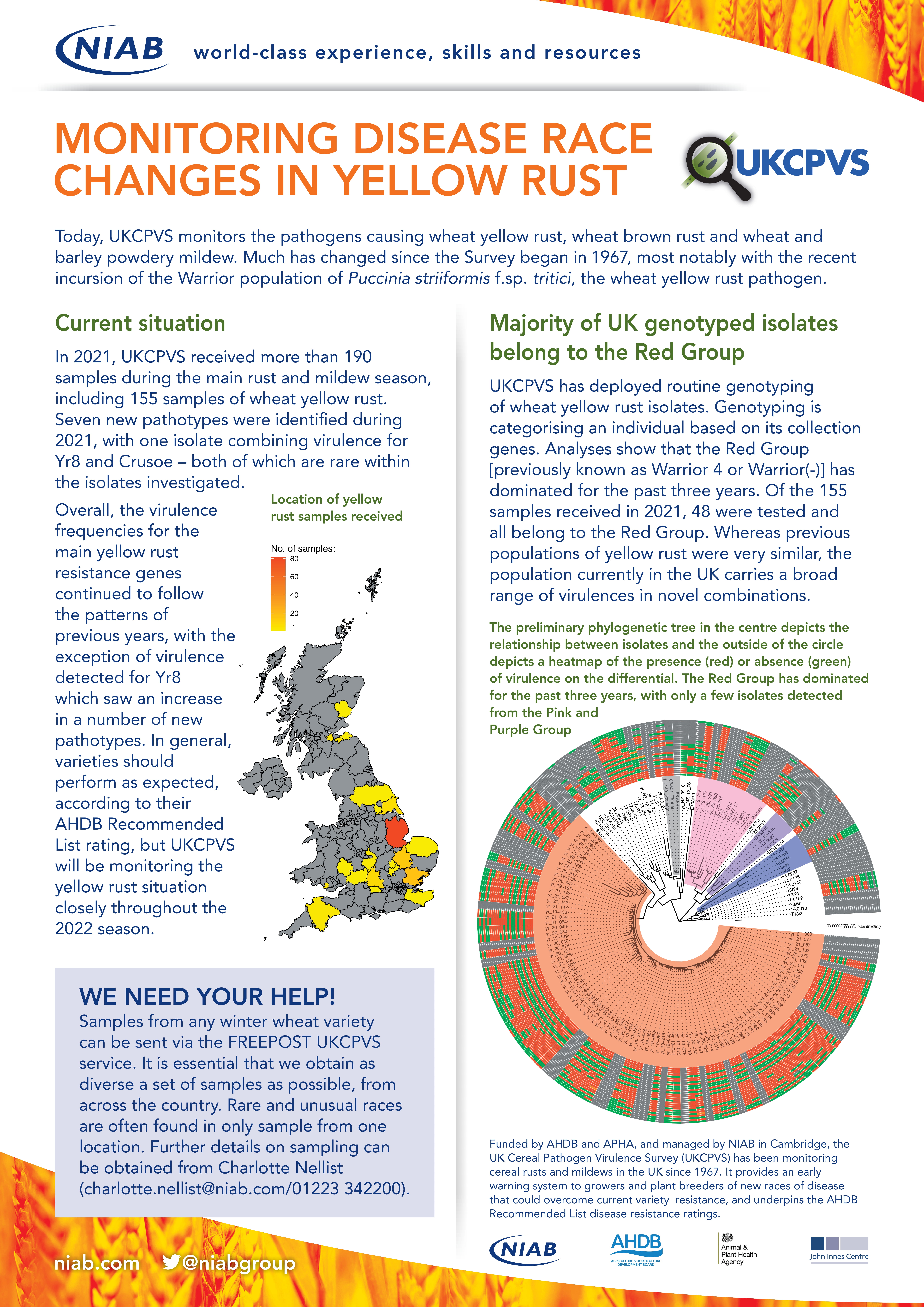 Funded by AHDB and APHA, and managed by NIAB in Cambridge, the UK Cereal Pathogen Virulence Survey (UKCPVS) has been monitoring cereal rusts and mildews in the UK for more than 50 years. It provides an early warning system to growers and plant breeders of new races of disease that could overcome current variety resistance, and underpins the AHDB Recommended List disease resistance ratings. NIAB pathology lead Charlotte Nellist summarises the latest work and advice from UKCPVS.