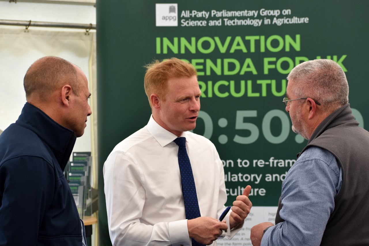 Mario discussing the 30:50:50 initiative: with shadow Defra minister Robbie Moore MP and APPGSTA’s Daniel Pearsall. The initiative aims to increase UK agricultural productivity by 30% by 2050, while simultaneously reducing the environmental footprint of farming by 50% per unit of output.